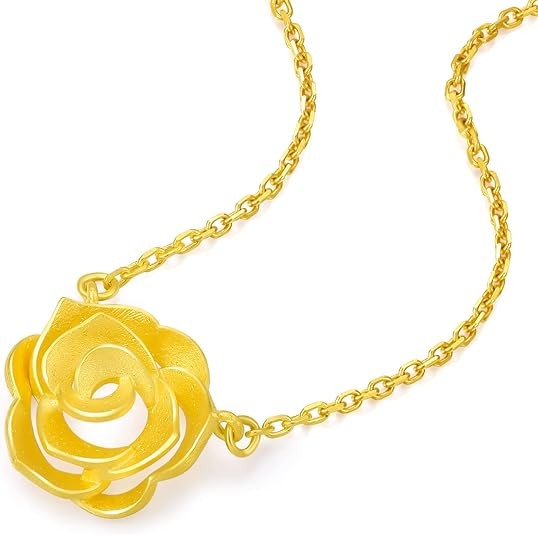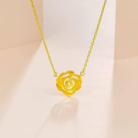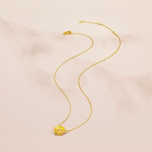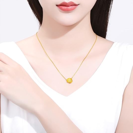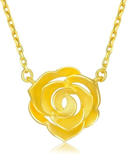 24K Solid Gold Pendant Necklace for Women, Real Pure Gold Jewelry Dainty Elegant Flower Pendant Chain for Men Girlfriend