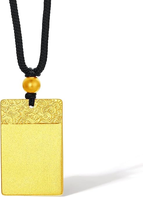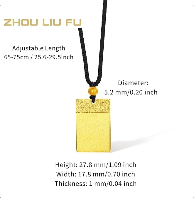 24K Solid Gold Pendant Necklace Rectangular Fortune Necklaces Ancient Style Chinese Jewelry Adjustable Black Braided Chain for Women Men Birthday Anniversary (65-75cm/25.6-29.5") A0413622