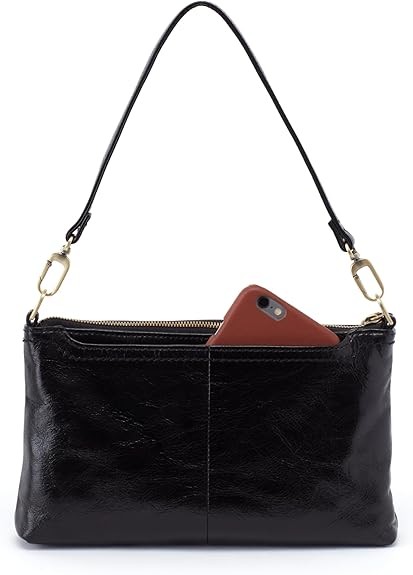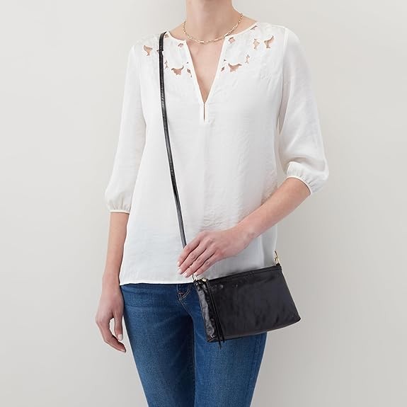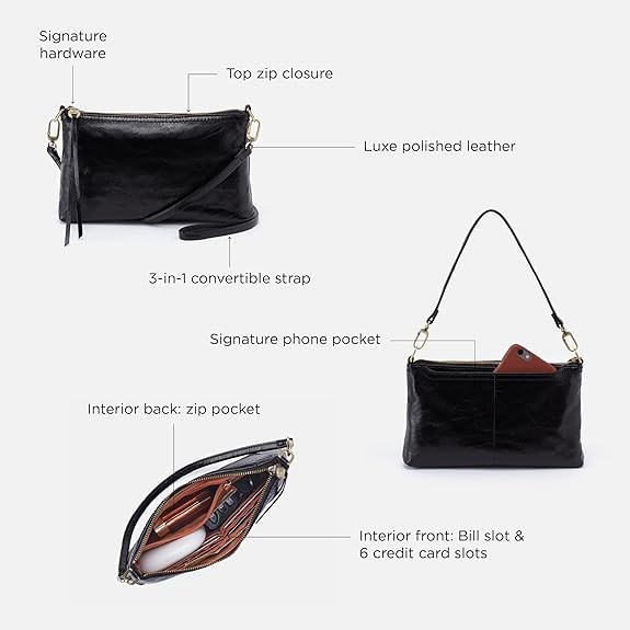 HOBO Darcy Leather Convertible 3-in-1 Crossbody Bag with Removable & Adjustable Strap, Exterior Phone Slip Pocket, Zipper Security, and Fashion Fringe Tassel, Black