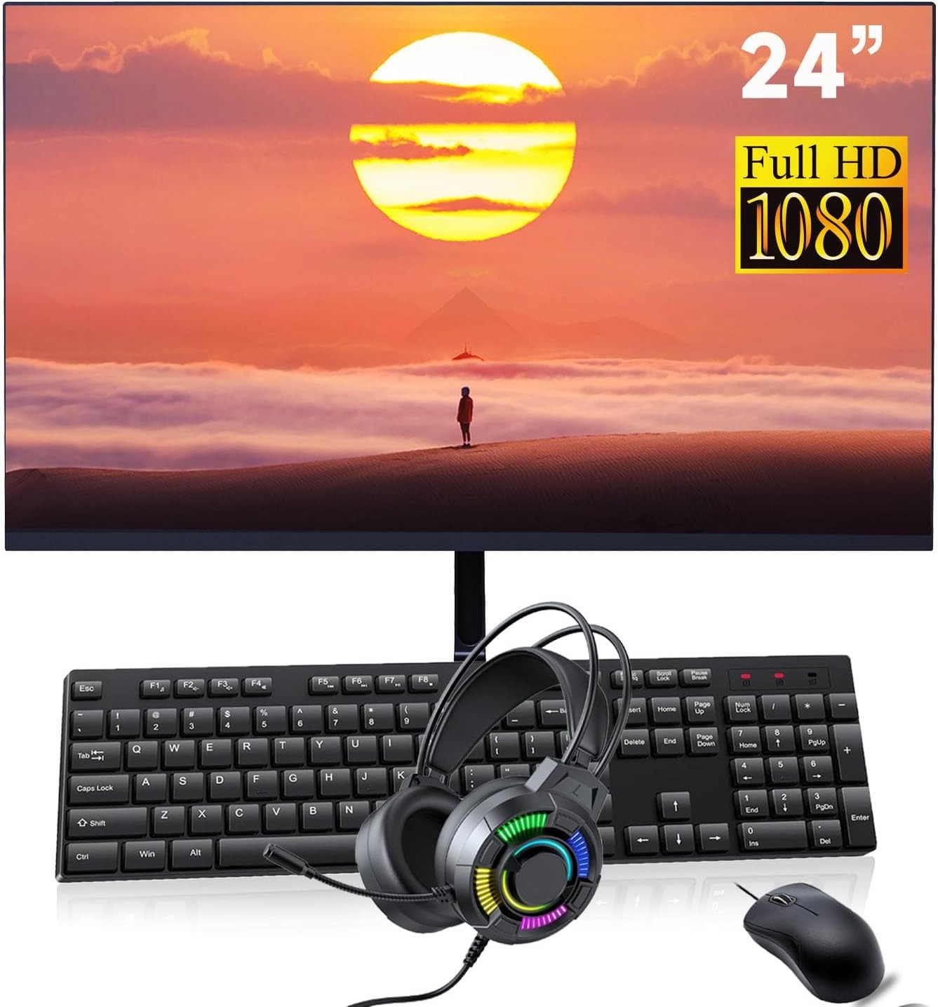 • PC Monitor(Brand New): The 24" FHD display of this Lenovo Thinkcentre mini Computer has a comfortable aspect ratio of 16:9, which provides impressive screen clarity. The monitor bracket has fully adjustable functions, allowing you to easily transition from landscape to portrait mode. A DP data cable has been equipped for connecting the computer and monitor. RGB Headphone brings you a surround auditory feast.