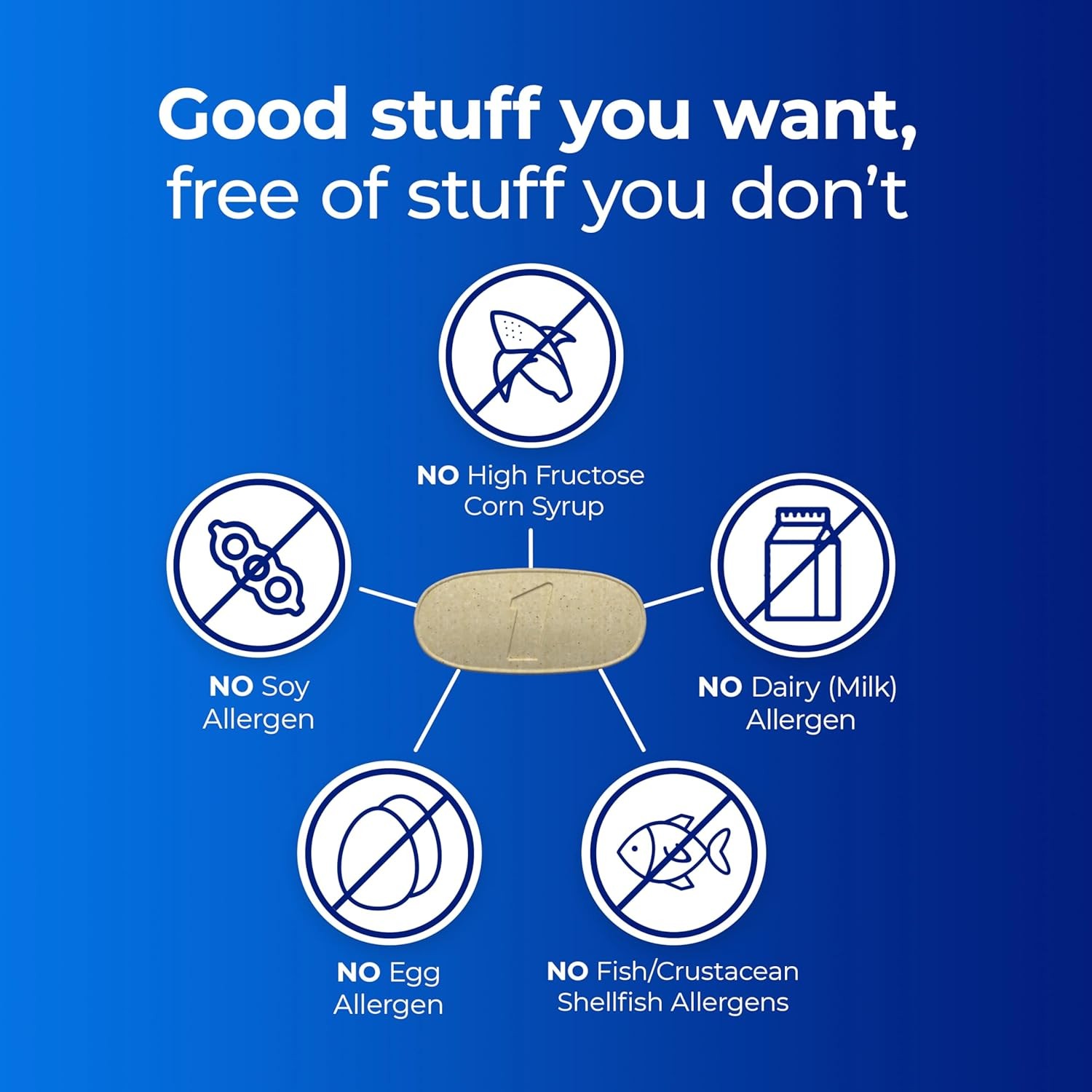 • One a day Men's Health Formula Multivitamins are free of gluten, wheat, dairy, artificial colors, and artificial sweeteners